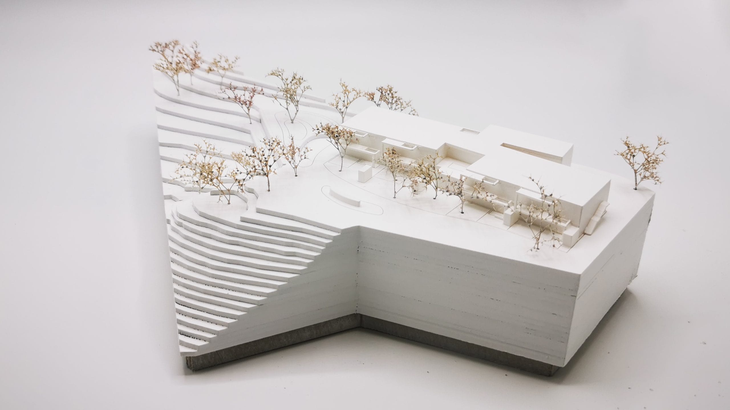 Im Sinne der Nachhaltigkeit und Bauökologie ist das Material Holz allgegenwärtig, wird aber in Struktur und Form gestalterisch variiert.